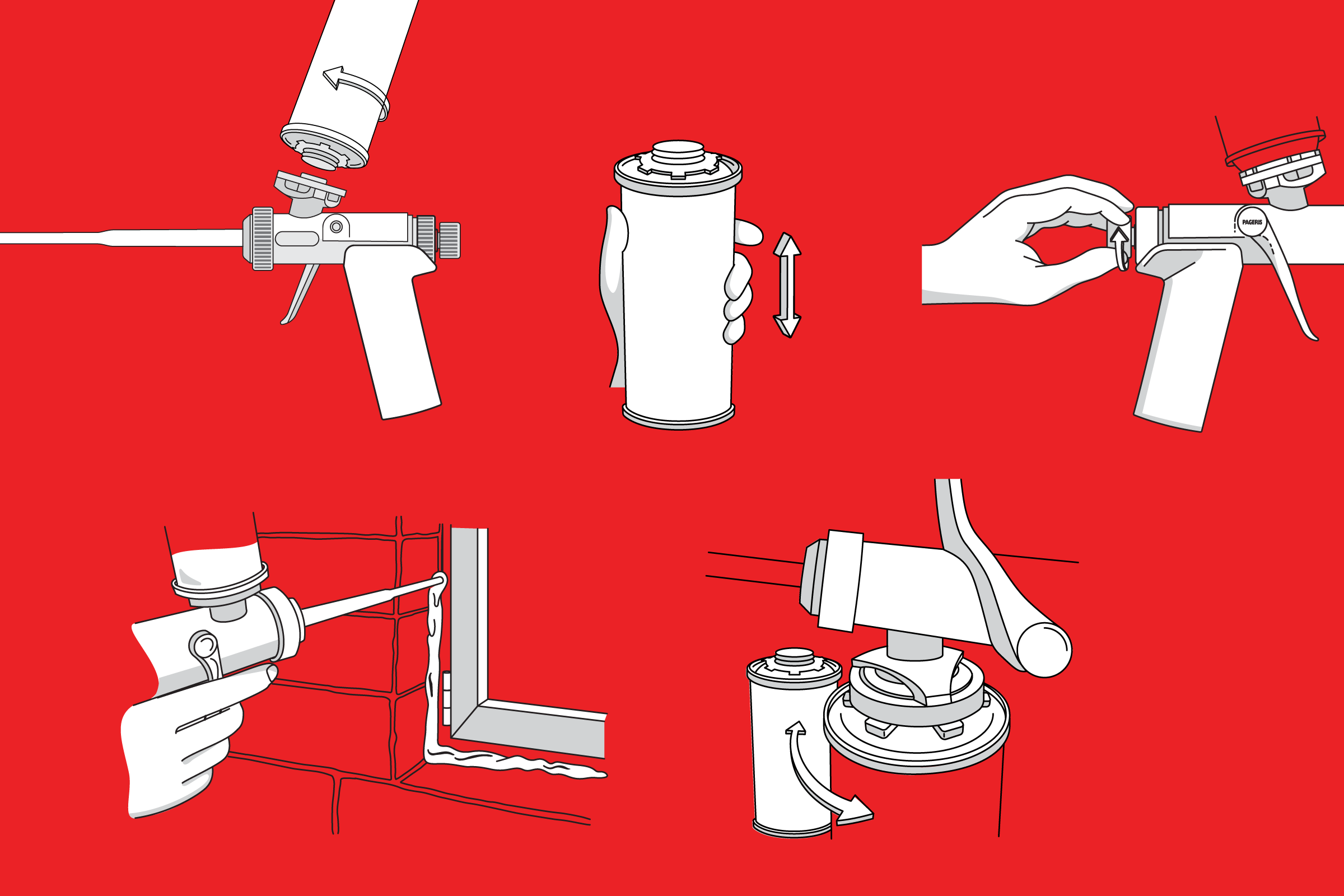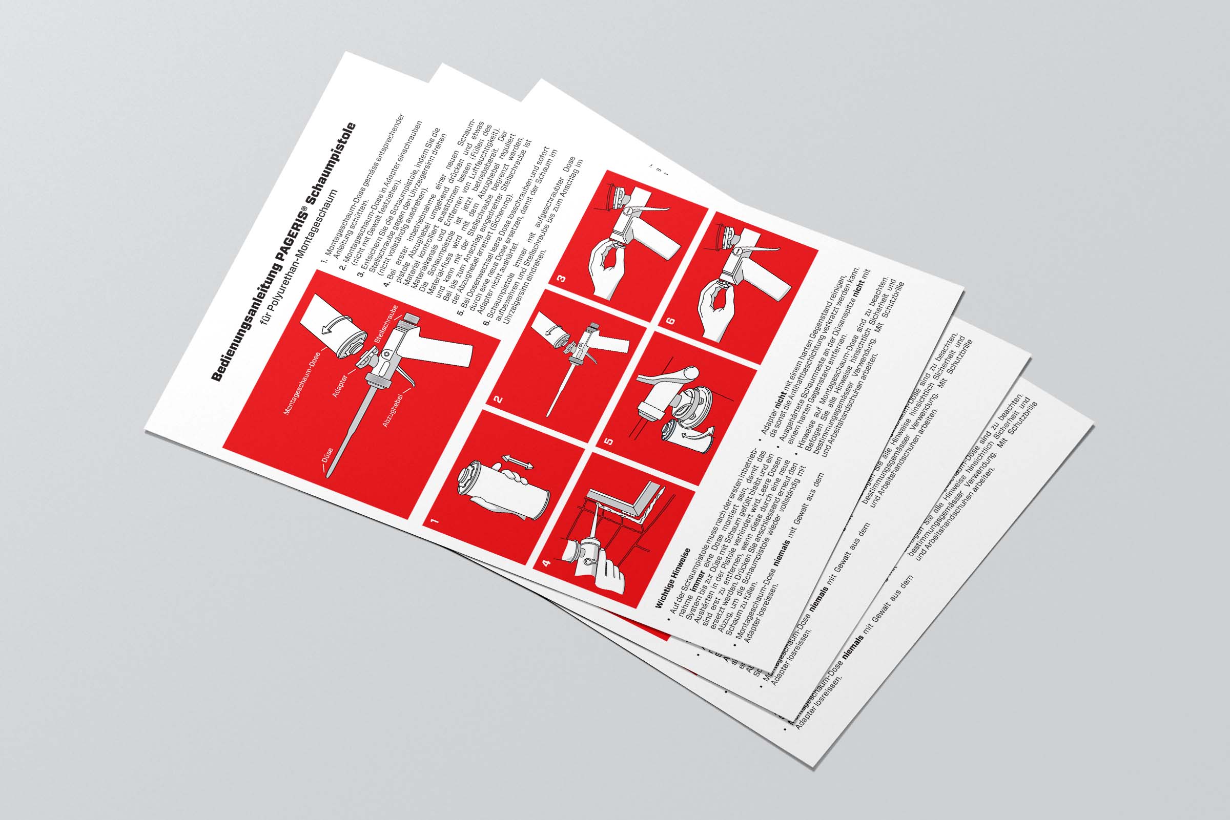 A set of illustrations for the user instructions of a swiss-made foam pistol.
