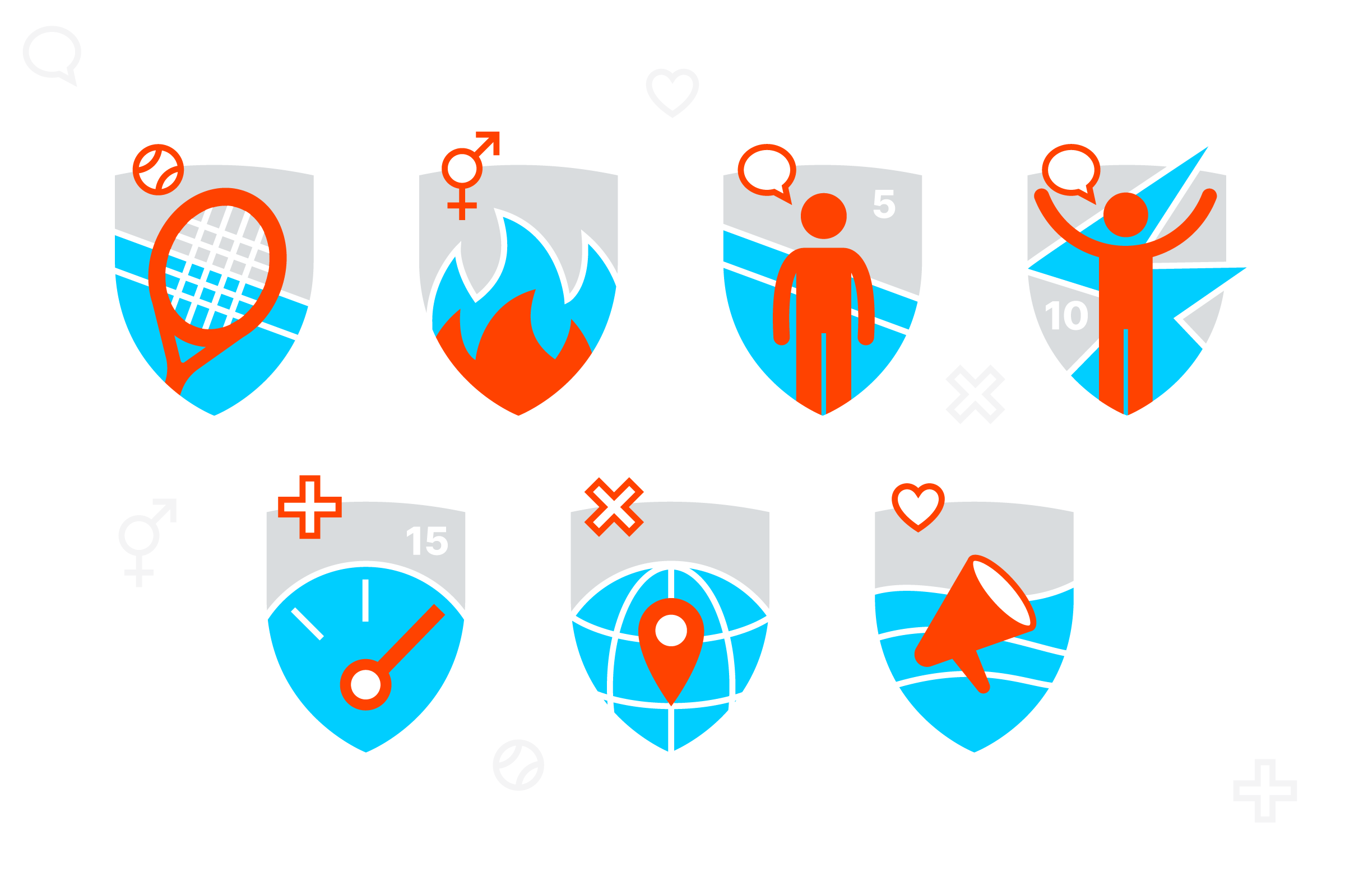 Gotcourts League is an app for finding tennis partners and booking courts. I designed the icons for the various challenges players can participate in and win prizes.